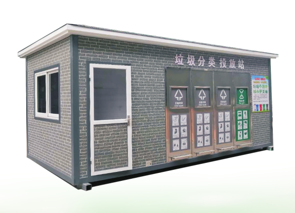 SJZNLJF-03【容量】:240Lx4,尺寸:8000mmx5000mmx3200mm(長x寬x高),投放口:6個(廚余、其他、有害、可回收),【配置】:香董機(jī)、空氣凈化除臭機(jī)、LED高清戶外電視、LED高清顯示屏、感應(yīng)手動開門系統(tǒng)、1.5匹掛機(jī)、監(jiān)控攝像頭、懸掛式干粉滅火器、排氣扇、高壓沖洗設(shè)備、紫外線消毒殺菌器、拖把池、感應(yīng)龍頭、配電箱、洗手池、開關(guān)及插座面板、電線及電纜、廣告及宣傳欄、感應(yīng)照明燈、滅蚊燈等,【備注】:材質(zhì)、尺寸、顏色可根據(jù)需求定制