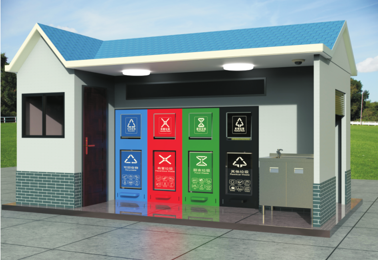 SJZNLJF-02【容量】:240Lx4,尺寸:4500mmx3000mmx2800mm(長x寬x高),投放口:4個(廚余、其他、有害、可回收),【配置】:香董機(jī)、空氣凈化除臭機(jī)、LED高清戶外電視、LED高清顯示屏、感應(yīng)手動開門系統(tǒng)、1.5匹掛機(jī)、監(jiān)控攝像頭、懸掛式干粉滅火器、排氣扇、高壓沖洗設(shè)備、紫外線消毒殺菌器、拖把池、感應(yīng)龍頭、配電箱、洗手池、開關(guān)及插座面板、電線及電纜、廣告及宣傳欄、感應(yīng)照明燈、滅蚊燈等,【備注】:材質(zhì)、尺寸、顏色可根據(jù)需求定制