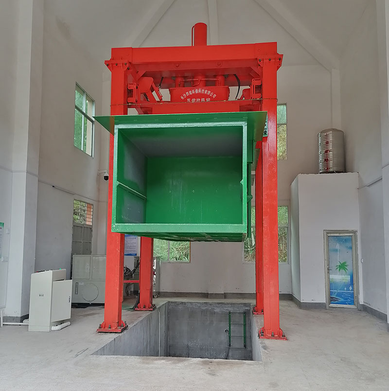 · 垂直式垃圾站:垃圾壓縮裝置與垃圾箱呈垂直豎立布置,垃圾從頂部投入垃圾箱,通過壓頭豎直向下進行壓縮。