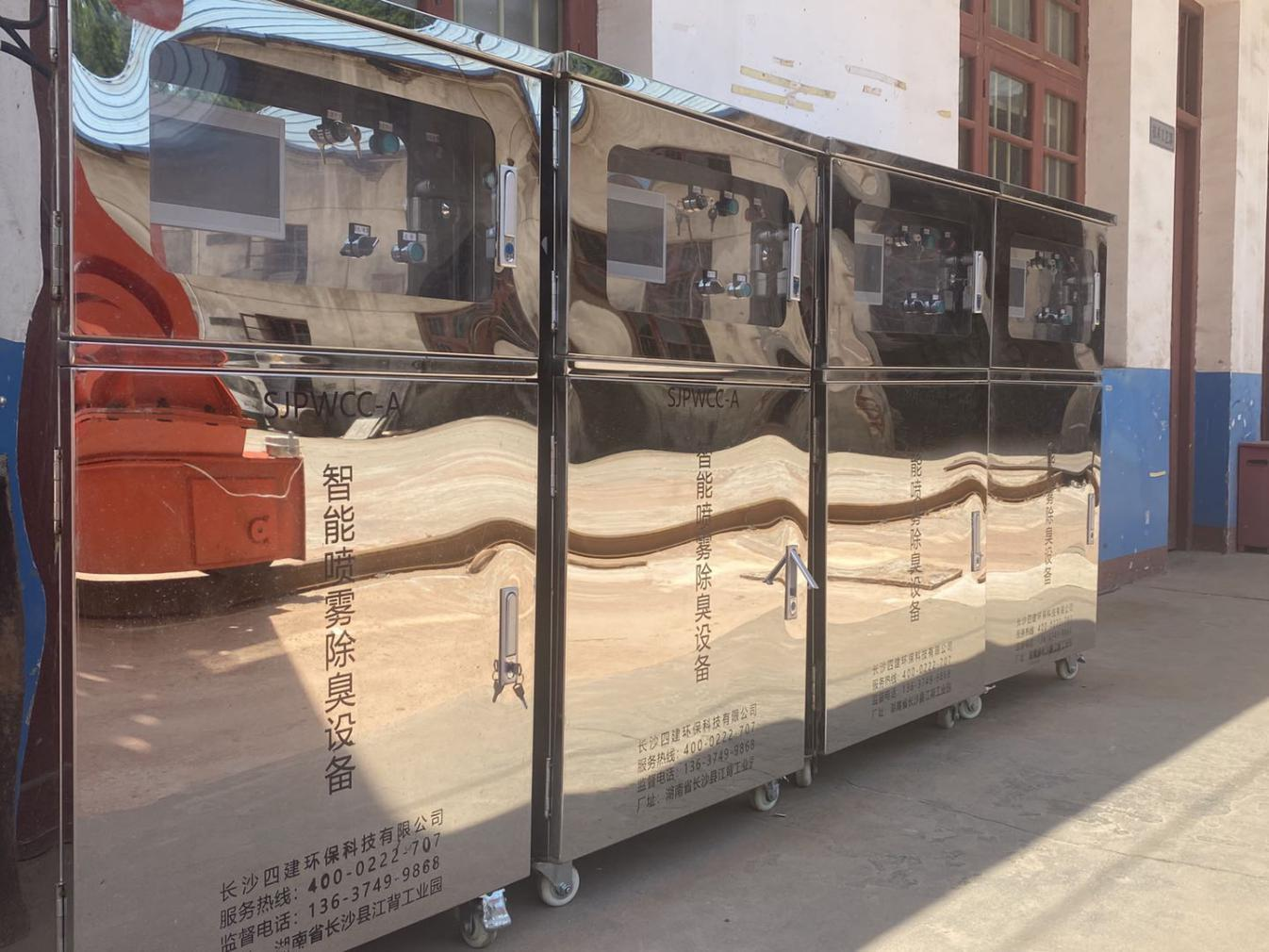 智能噴霧除臭系統(tǒng)的工作原理是利用高壓泵將經(jīng)過水處理系統(tǒng)凈化過的水,再加入微生物除臭液的藥劑,經(jīng)過高壓泵加壓至 40 公斤以上,經(jīng)過高壓管路傳送至高壓霧化噴嘴,霧滴的直徑僅為 1-15μm,這些微小的霧化顆粒能長時間漂浮在空氣中,漂浮在空間,這些微霧因加入了微生物除臭藥劑,所以具有藥性,能在每個空隙中蔓延,從而達(dá)到無死角全面消毒除臭,因為水霧蒸發(fā)需要吸收熱量,所以在夏季又可以很好的起到降溫的效果。